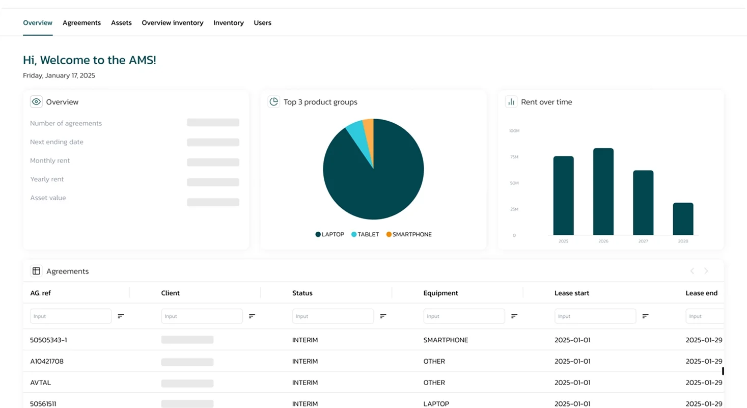 I vår onlineportal – Itreon Asset Management System (AMS) – får du full överblick över ditt företags IT. Du ser vilka enheter ni har, vem som använder vad, hur utrustningen är finansierad och när avtalen löper ut. Leverantörer, modeller, inköpsdatum och avtalstider – allt finns samlat på ett ställe.